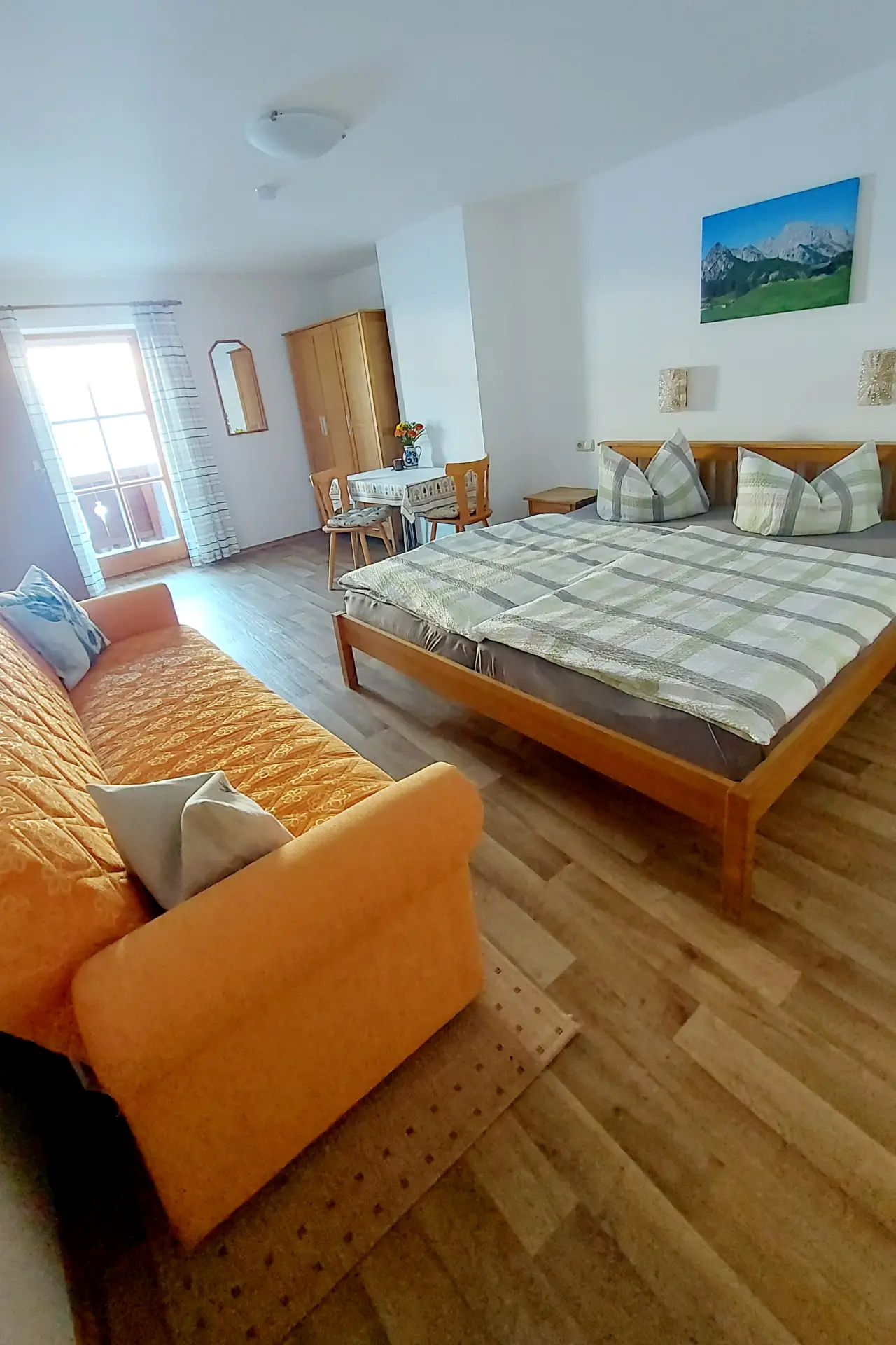 Hier bei uns in der Ramsau am Hochschwarzeck bieten wir Ihnen gemütliche Zimmer mit freiem Ausblick auf die Natur an. Im Sommer können Sie vom Bauernhof aus direkt in die schöne Natur wandern oder eine Skitour auf den Hausberg, den Toten Mann gehen. Die Zimmer sind gemütlich eingerichtet. Weiters können Sie die Gästeküche nutzen und einen gemütlichen Abend im Aufenthaltsraum verbringen.