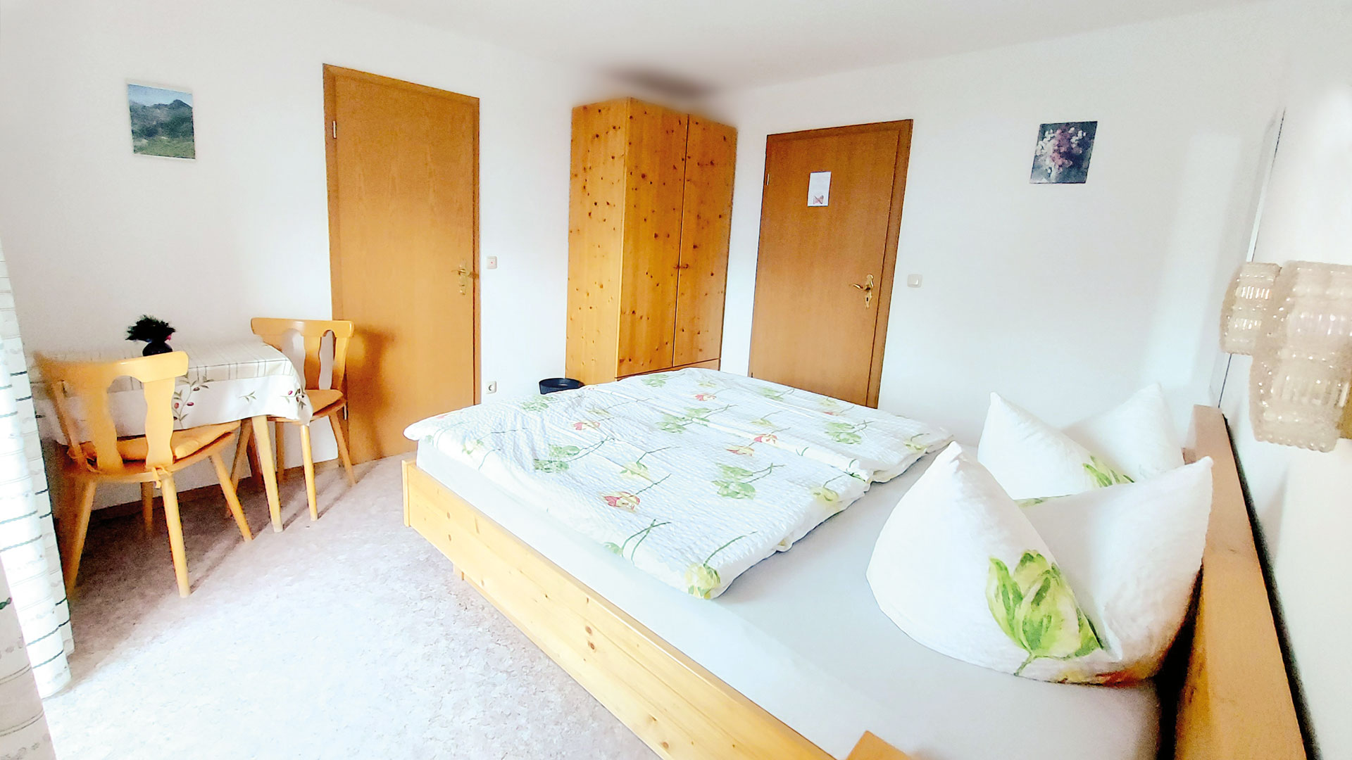 Das Doppelzimmer ist mit Dusche und WC ausgestattet. Die Einrichtung des Doppelzimmer ist gemütlich und im ländlichen Stil. Das Zimmer liegt im ersten OG. Als weiteres Extra gilt die Gästeküche, der Gästekühlschrank wie auch der Aufenthaltsraum. Für Sie als individualreisenden bieten wir einen kostenfreien Stellplatz für ihr Auto an. Wir freuen uns auf Sie als Gast.