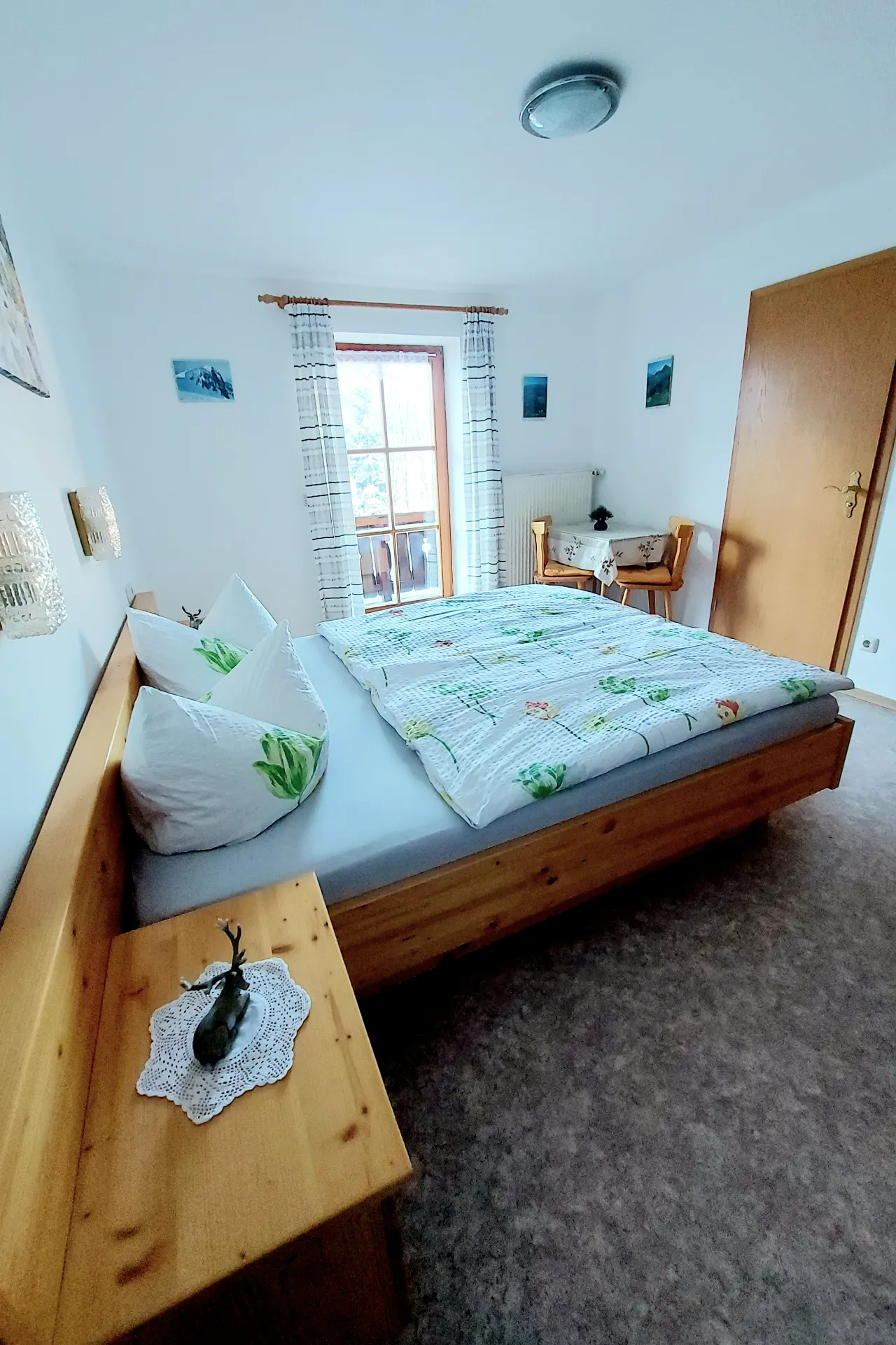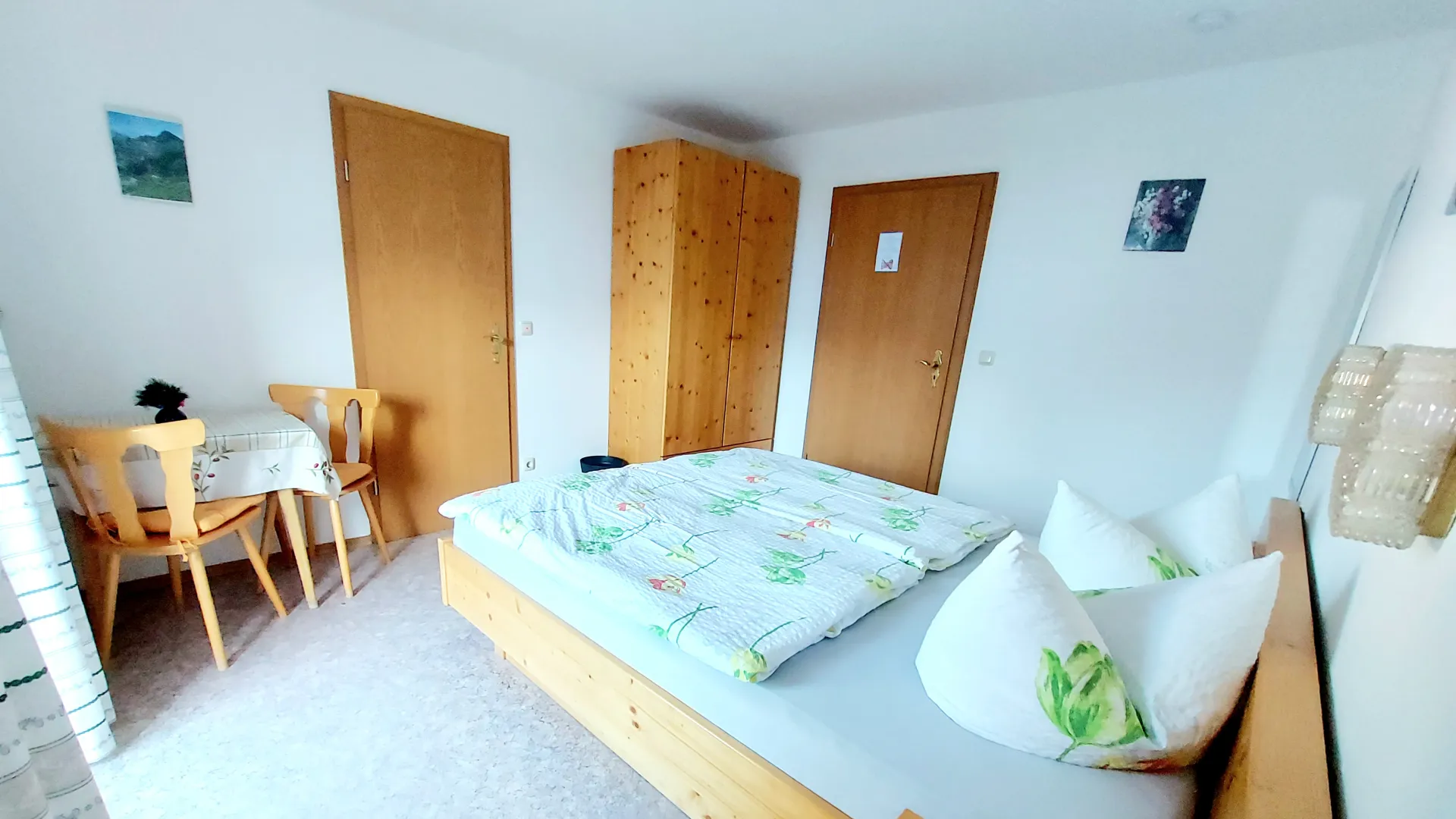 Das Doppelzimmer ist mit Dusche und WC ausgestattet. Die Einrichtung des Doppelzimmer ist gemütlich und im ländlichen Stil. Das Zimmer liegt im ersten OG. Als weiteres Extra gilt die Gästeküche, der Gästekühlschrank wie auch der Aufenthaltsraum. Für Sie als individualreisenden bieten wir einen kostenfreien Stellplatz für ihr Auto an. Wir freuen uns auf Sie als Gast.